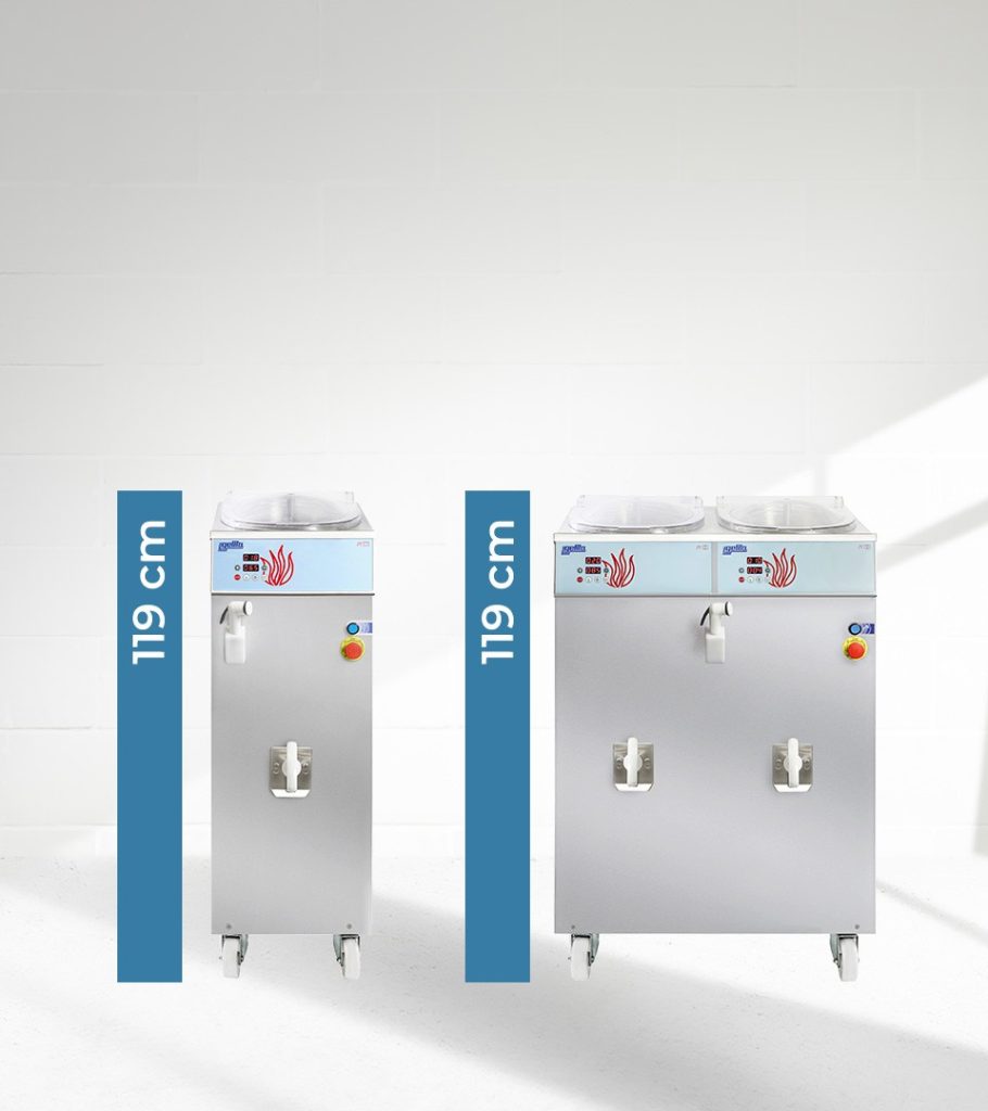 Ovi uređaji griju, hlade, emulgiraju i čuvaju smjesu prema najvišim higijenskim standardima, pružajući maksimalnu učinkovitost bez rizika od zagorijevanja ili smrzavanja. Čak i kada proizvodite polovičnu seriju, rezultati su dosljedni i vrhunski, zahvaljujući eliptičnom spremniku i ergonomskoj miješalici koja potpuno eliminira grudice.